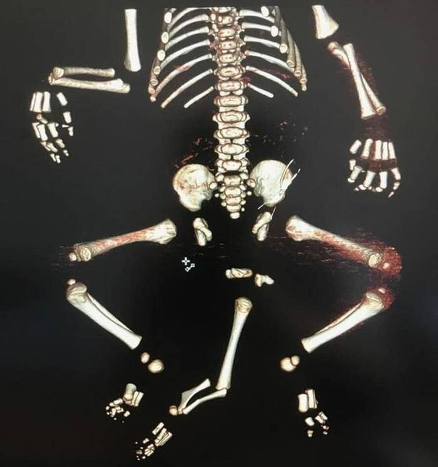 Οι επιστήμονες στη Μόσχα θεωρούν ότι το τρίτο πόδι που είχε δύο πατούσες και βρισκόταν ανάμεσα στα άλλα δύο πόδια του, προερχόταν από τον δίδυμό του που δεν κατάφερε να αναπτυχθεί πλήρως στη μήτρα της μαμάς του. Το βρέφος, επίσης, γεννήθηκε με δύο μόρια αλλά χωρίς πρωκτό.