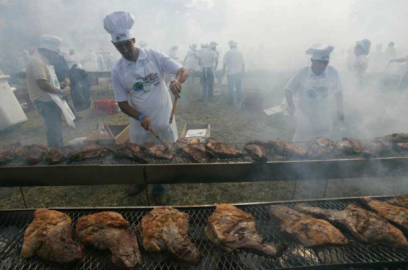 Το μπάρμπεκιου άρχισε αμέσως μετά τα μεσάνυκτα και οι ψήστες στέκονταν ο ένας δίπλα στον άλλον επί 14 ώρες για να αναποδογυρίζουν και επιβλέπουν το κρέας.