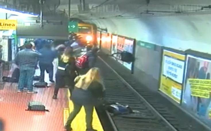 Σε βίντεο καταγράφηκαν οι δραματικές στιγμές σε σταθμό του μετρό στο Μπουένος Άιρες, όταν μια γυναίκα έπεσε στις γραμμές και ο συρμός πλησίαζε εκείνη τη στιγμή.